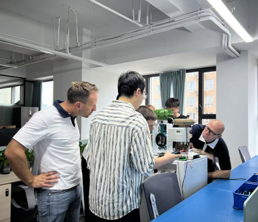 近日,声科电子的AI电磁阀定位器实验室迎来了一群特殊的客人 — 欧洲知名自动化跨国集团技术考察团一行。