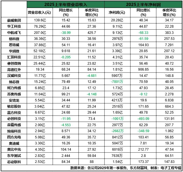 2025上半年中国传感器上市企业业绩汇总(不完全统计)