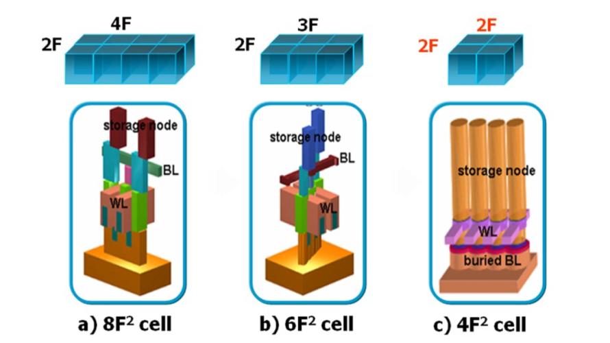 单元结构优化是关键突破点。4F²结构作为存储单元垂直化的核心方案,将传统水平分布的源极、栅极与漏极转化为垂直层级,使单个单元面积缩减约三分之一。这一结构接近单个位单元的理论极限,能在不缩小最小特征尺寸的情况下,将存储密度提升30%左右。