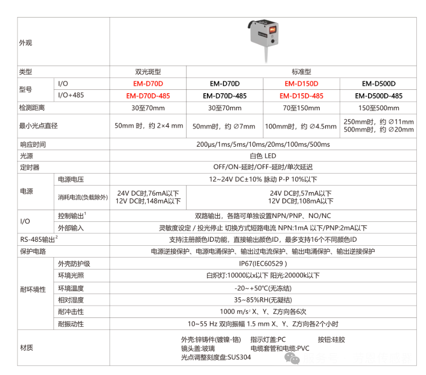 针对特殊颜色检测,提供全面解决方案,满足各类检测需求:小光点型,支持单光点和双光点检测,通过在不同位置设置光点,精确捕捉目标物体不同部位的颜色信息,实现多角度观测
