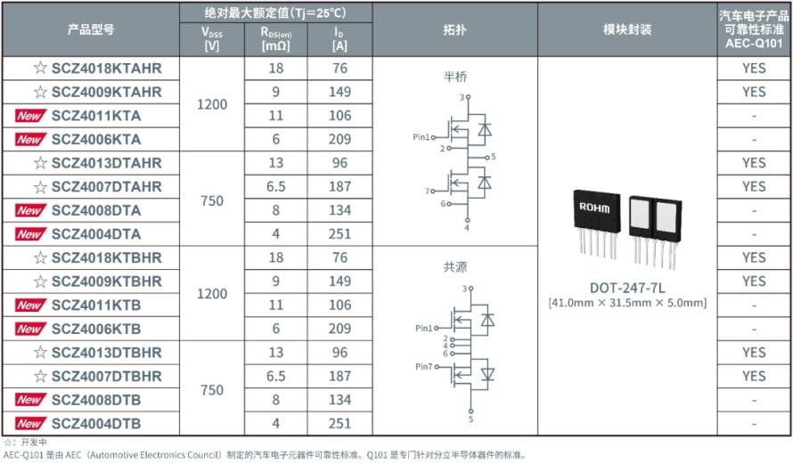 产品阵容包括750V耐压的4款机型(SCZ40xxDTx)和1200V耐压的4款机型(SCZ40xxKTx)。