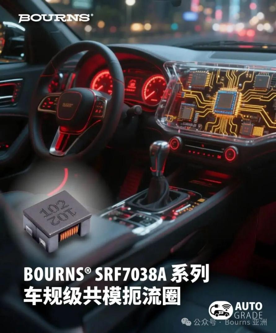 Bourns 推出全新 SRF7038A 车规级共模扼流圈,高电流、强屏蔽,全面抑制 EMI 干扰!