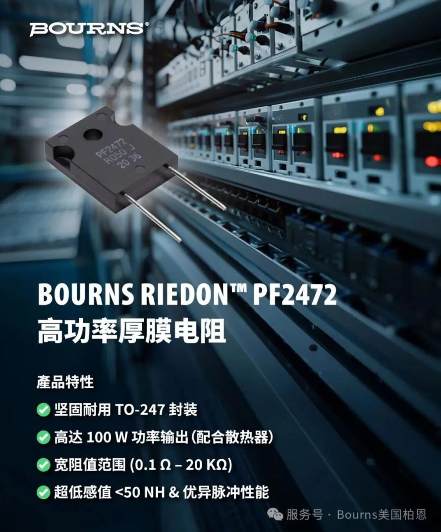 Bourns 最新 Riedon™ PF2472 系列拥有超低感值 (<50 nH) 及卓越的脉冲处理能力,并在 0.1 欧姆至 20k 欧姆的广泛阻值范围内提供精准的 ±1% 公差。在当今许多高功率密度电子应用中,该系列在单一节省空间的封装内,即可提供优异的功率耗散能力与必要的高耐热性能。