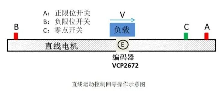 在直线运动控制系统中,为了实现准确定位,经常会用到回零操作,以保证电气系统和机械系统具有共同的基准点,一般结合零点开关和编码器来共同完成。当负载运动到零点开关附近时,触发零点开关发出Zero信号脉冲,以指示参考零点的粗略位置但不够精确,需要与线性位置编码器芯片VCP2672内部的高精度AB信号同步,才可以保证得到精确的零点位置。