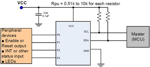 配置为输入端口时,内置100k欧姆上拉电阻,无需外部另加上拉电阻,减少外围组件(也有不含内置上拉电阻的产品,例如CA9534,待机功耗低至1uA)