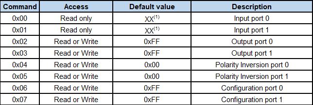 CA9555的产品功能实现依靠内部四组寄存器:Input Port、Output Port、Polarity Inversion Port和Configuration Port。每组寄存器由2个byte共16bit数据构成(4路和8路的I/O扩展产品每组寄存器只有1个byte共8bit)。