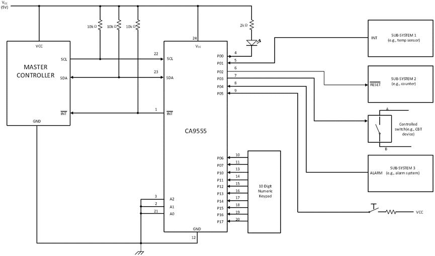 图2 十六通道I/O扩展芯片CA9555典型电路图