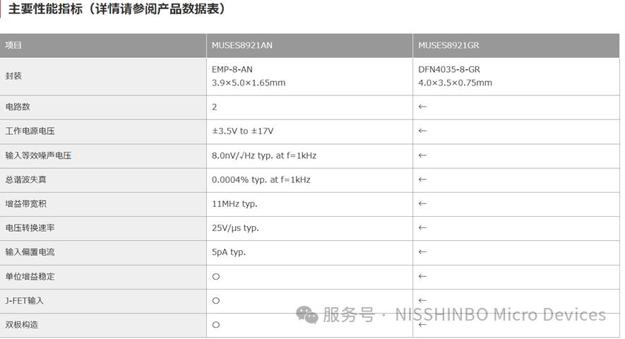 日清纺微电子推出用于音频设备的双路、J-FET输入类型的高端音频运算放大器“MUSES8921”. 本产品是MUSES系列中的J-FET输入类型标准型号,MUSES系列汇集了本公司近50年的运算放大器设计技术和经验,旨在尽可能忠实地再现原声。