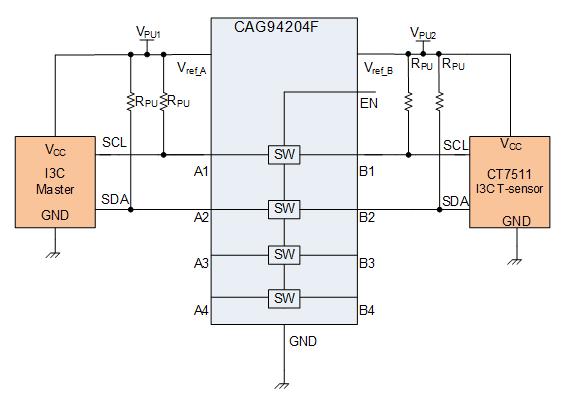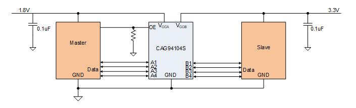 图1 四通道开关型电平转换器CAG94204F内部架构图