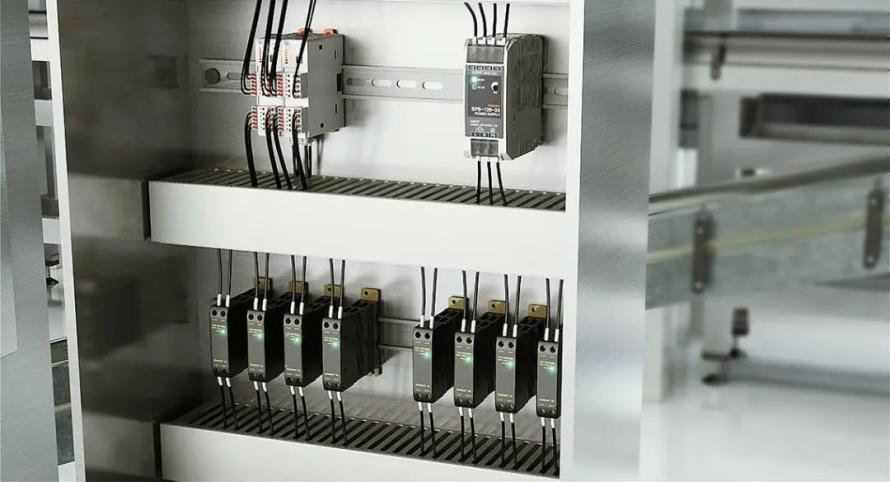 多通道模块型温度控制器,开关电源和固态继电器用于饮料棒包装机中提供电力和控制温度。