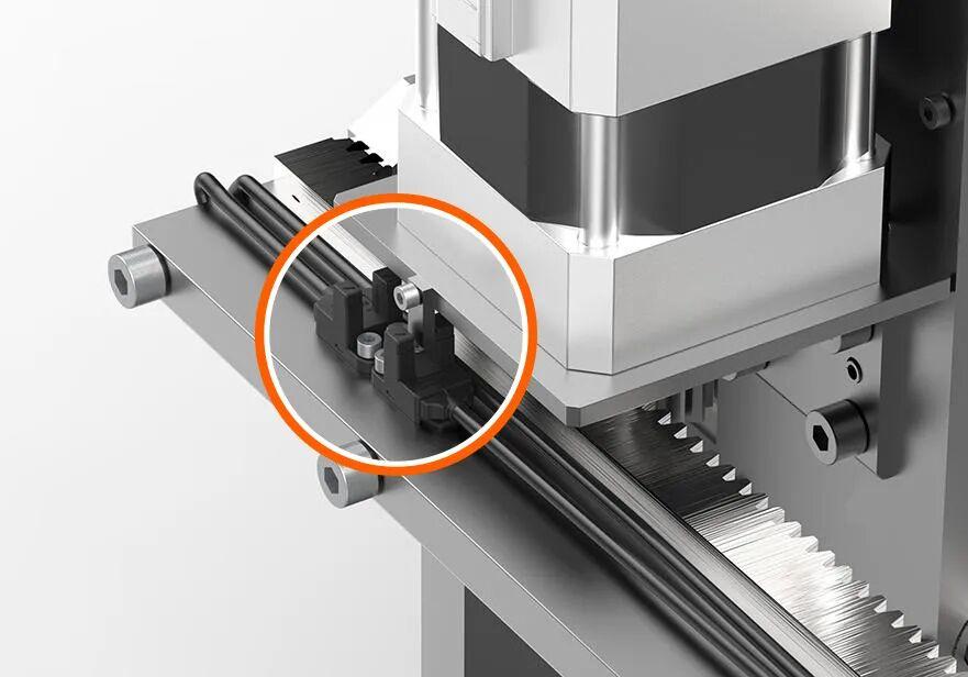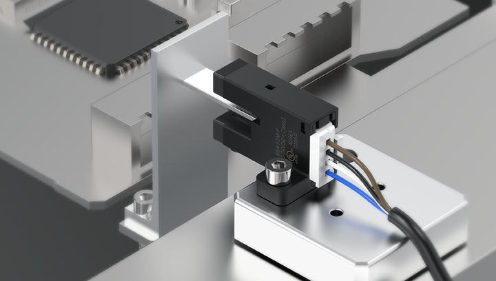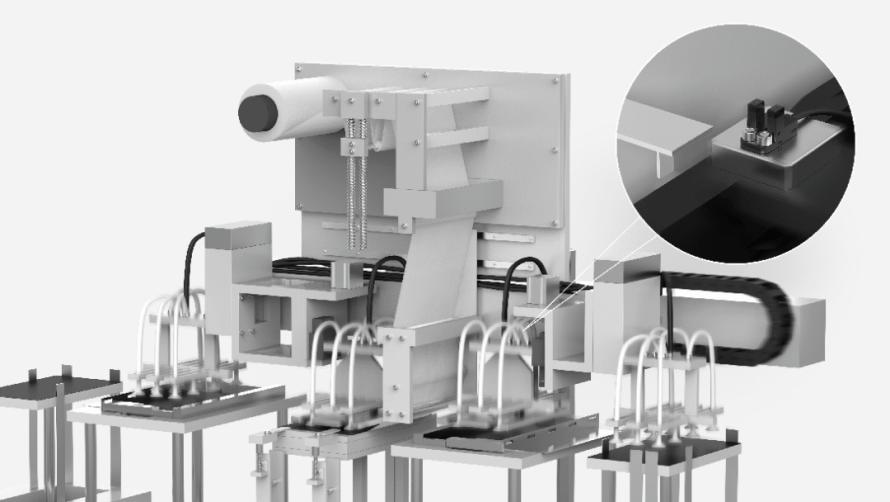 带有柔性线缆的微型光电传感器用于检查夹持器的正确位置,同时堆叠电池的阴极,阳极和分离器,而不会损坏线缆。
