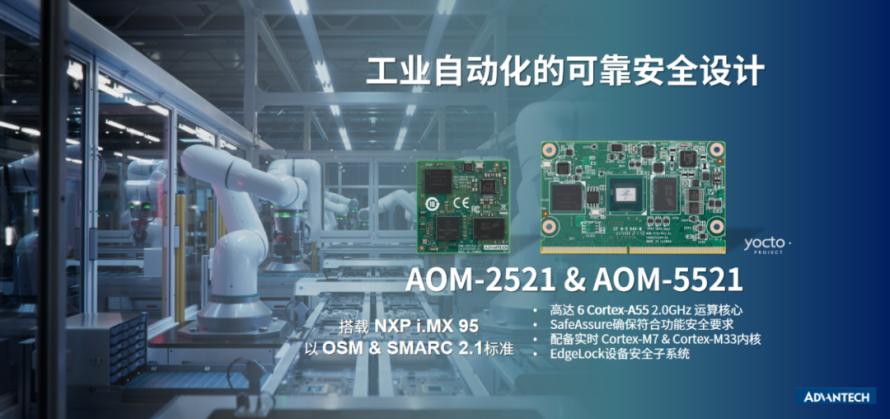 全球边缘计算和边缘人工智能解决方案供应商——研华隆重推出两款基于NXP i.MX 95平台的新型紧凑型核心模块:AOM-5521 (SMARC) 和 AOM-2521 (OSM)。
