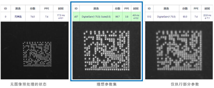 VHV5-F具备优化设定功能,通过应用预处理滤镜和设定条件,来确保代码的理想质量,并将读取时间波动最小化,从而缩短读取时间。在同一视野内,即使位置有偏差,系统也能通过优化设定实现稳定读取。
