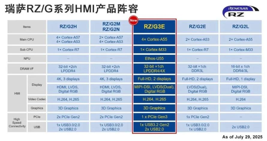 全球半导体解决方案供应商瑞萨电子(TSE:6723)今日宣布推出全新64位微处理器RZ/G3E(MPU)。RZ/G3E作为一款通用型产品,针对高性能人机界面(HMI)应用进行优化,集成运行频率高达1.8GHz的四核Arm® Cortex®-A55和一个神经网络处理单元(NPU),可实现高性能边缘计算,并具备AI推理功能,从而带来更快、更高效的本地处理。凭借全高清图形处理能力和高速连接功能,该MPU主要面向工业和消费领域的HMI系统,包括工厂设备、医用监视器、零售终端和楼宇自动化系统。