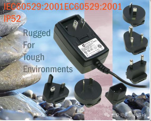 GlobTek提供业内最完整的防水和防风雨电源和AC适配器产品之一。一些型号提供可选的IPx2 (IP42 / IP52), IPx3 (IP43/IP53), IPx4 (IP44/IP54)和一些专门为IP67和IP 68等级设计的型号,GlobTek可以为任何需要入口保护的应用提供解决方案。