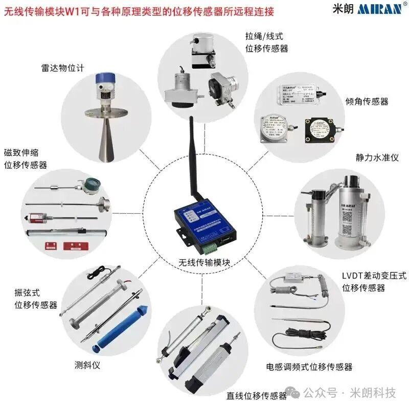 七、米朗传感器无线传输模块W1/无线数传电台与其他类型传感器连接示意图: