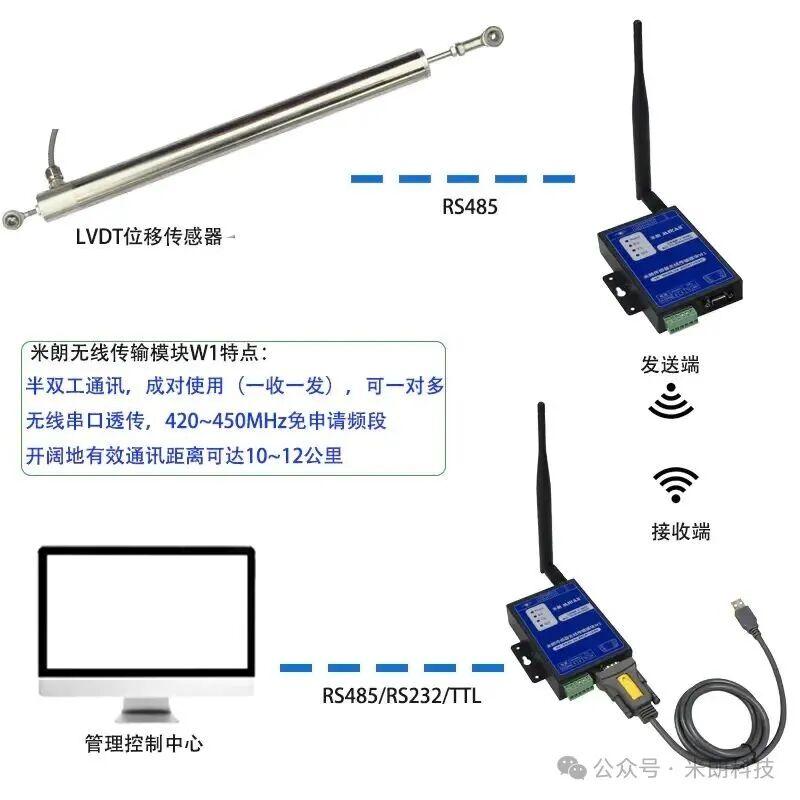 无线传输模块与LVDT位移传感器所远程连接