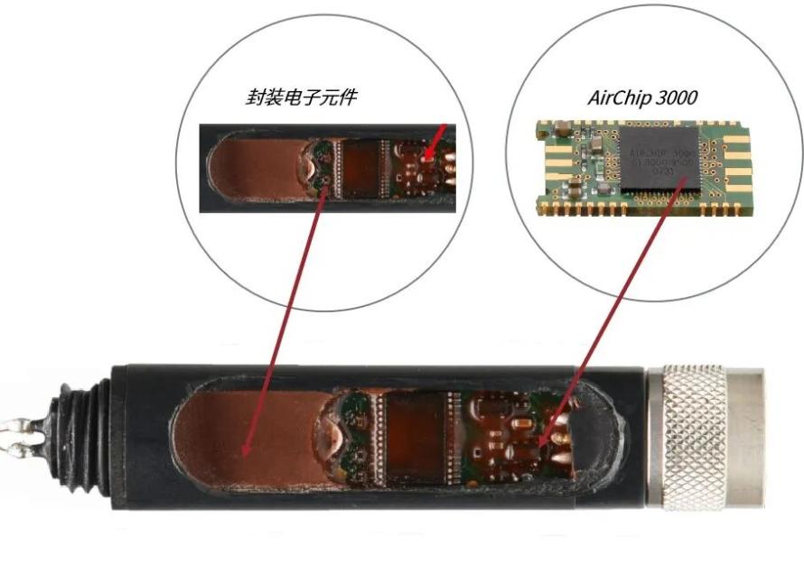 一般来说,探头可分为两部分:传感元件和电子微控制器。罗卓尼克开发的AirChip 3000微控制器,安装在小型PCB板上,由ASIC芯片(专用集成电路)、微控制器和存储器组成,其基本功能是精确调节和处理来自两个外部传感器的信号:湿度传感器和温度传感器,并提供数字和模拟输出信号。