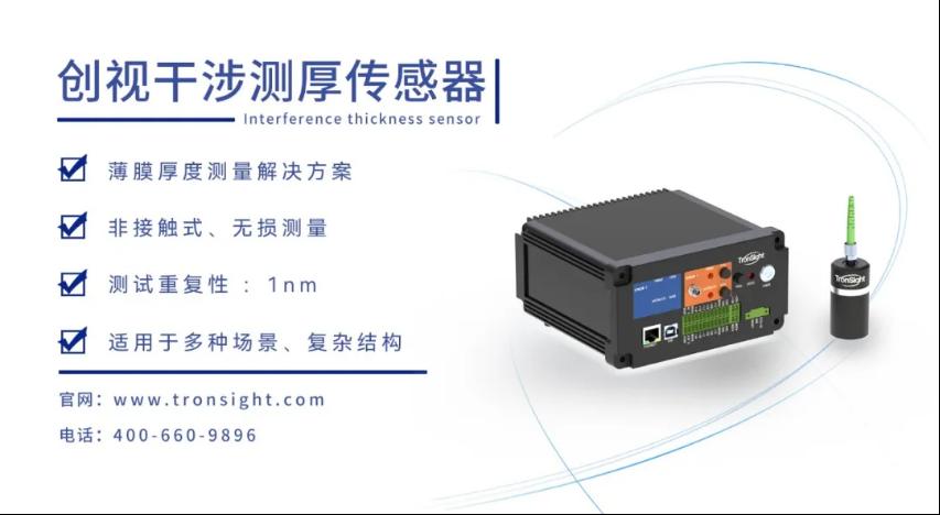 对于超薄TCO薄膜,厚度通常在几十纳米甚至几纳米级别,因此对沉积时间的精确控制以及在线监测技术的应用显得尤为重要,以确保薄膜厚度的重复性和稳定性。创视智能生产的干涉测厚仪便可实现在制备工艺时在线监控薄膜厚度,从而提高产品良率。