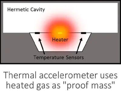 图|由于没有活动部件,基于热传感技术的加速度计相比机械式传感器具有更优异的稳定性和精度。