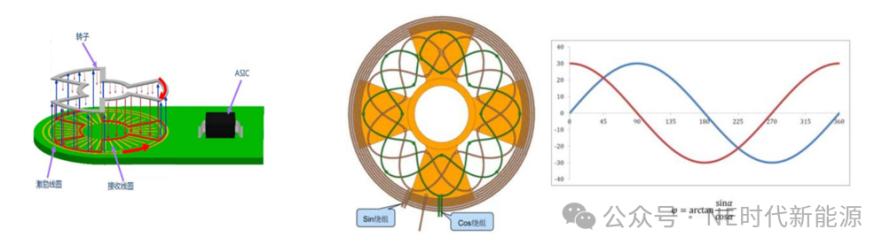 其核心原理是通过正交分布的正弦和余弦绕组线圈,感应旋转磁场产生的高频信号,经芯片解调后输出正余弦包络信号,最终由MCU计算角度位置。相比传统旋转变压器,该技术无需复杂激励电路和解码器,成本更低、体积更小,且能支持最高150000rpm的高速检测。