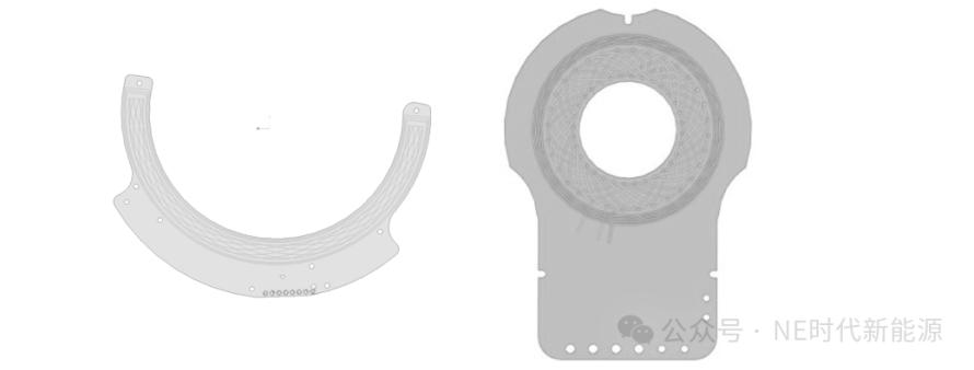 当然全圆的方案也有,将环形结构的电磁感应区中心为实心(即无镂空区域),将其作为全圆方案,全圆方案的线圈能够以完整周期进行排布,感应涡流产生能够覆盖整个圆,故识别的信号完整度高,此外,由于全圆线圈方案的周期完整性,在下线测试的转子旋转过程中能进行周期性的补偿,对安装导致的径向误差具有较强抵御能力。因此,使得全圆设计方案能够具有更为优秀的精度,能够灵活应用到不同项目中。