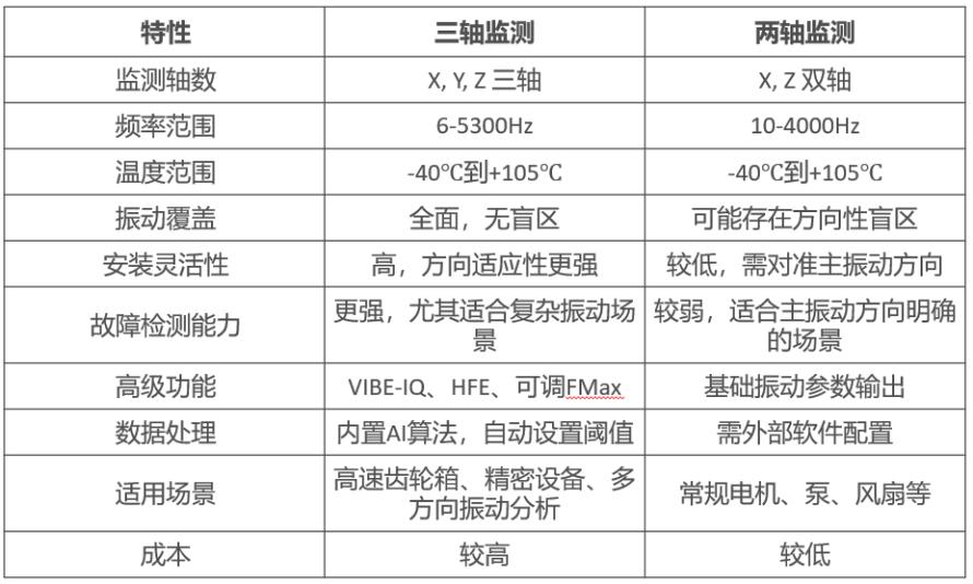 振动监测是预测性维护(PdM)的核心手段,能早期识别设备故障(如轴承磨损、不对中、不平衡等),避免非计划停机。温度监测则用于识别过热、润滑不良等问题。三轴监测相比两轴监测能提供更全面的振动数据,覆盖更多故障类型,提升诊断准确性。