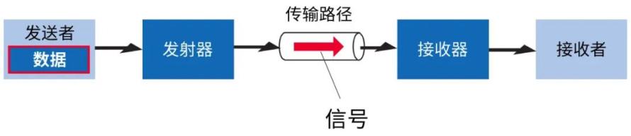 当这些静态数据经过处理并从发射器沿着传输路径移动时,在本文中将该数据称为信号(图1)。通过互联网从智能手机向熟人发送照片时,数据会以信号的形式发送。信号是时间轴的特性(尽管它也具有频率轴的特性),在此为了简单起见,我们认为“将数据沿时间轴移动即成为信号”。