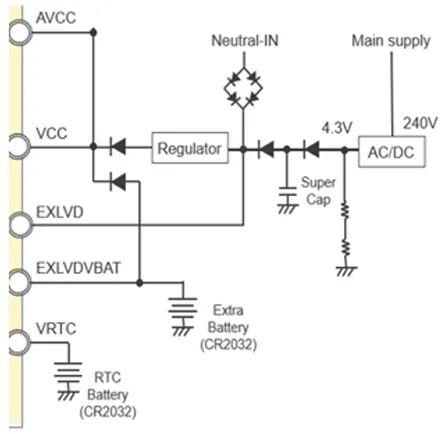 如果此电池开始出现故障,EXLVD会检测到故障,系统可以安全关闭,而由独立备用电池维护的RTC将继续运行并保持正确的时间,直到主电源恢复。