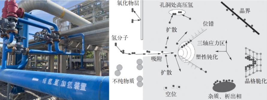 (4)扩散聚集:在应力诱导等作用下氢原子发生扩散并在三轴应力较大的裂纹尖端等位置 聚集,进而使材料的性能产生劣化;