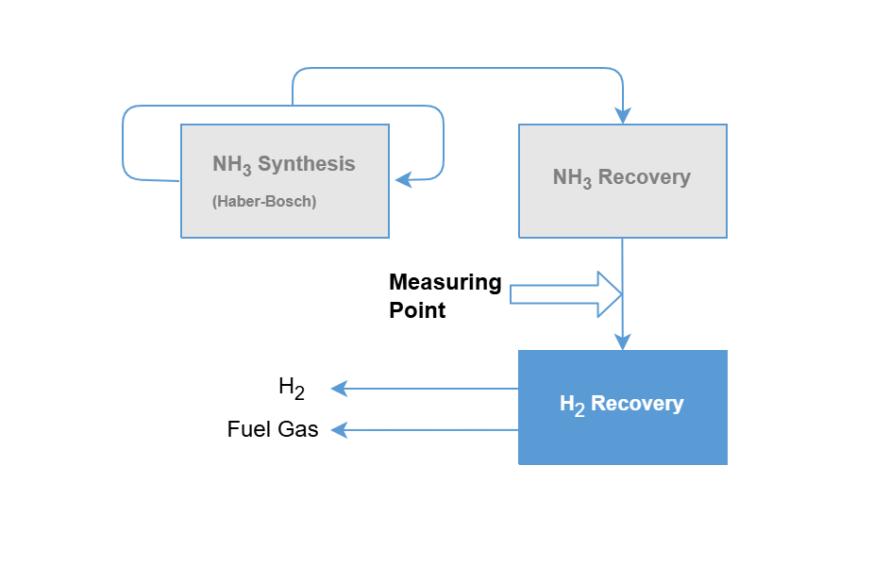 在氢气回收装置的进气口处,必须监测残留的微量氨浓度。这是因为氨会损坏半透膜,从而缩短其使用寿命并降低整个回收装置的运行时间。 一般来说,氨浓度不应超过50 ppm,以避免造成设备损害。