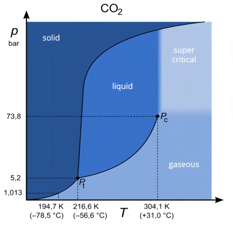 (不同温度、压力下CO2的相态)