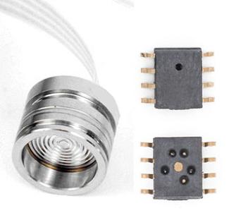 目前硅压阻压力芯体常用的非隔离和隔离两种封装结构,非隔离式一般封装在塑料外壳内,硅片表面点硅凝胶保护,这种结构比较适合车用进气歧管压力、胎压和大气压力的测量,量程和成本优势明显,也有用点特殊胶水封装后应用于机油、水、尾气压力测量的,但使用寿命问题难以解决。隔离封装一般使用金属膜片内部充油方法,这种封装方式可用于机油、冷媒、燃油、尾气等有腐蚀性或污染严重介质,但由于充油工艺复杂生产成本高,相对于其它种类的传感器来说性价比不是很明显。
