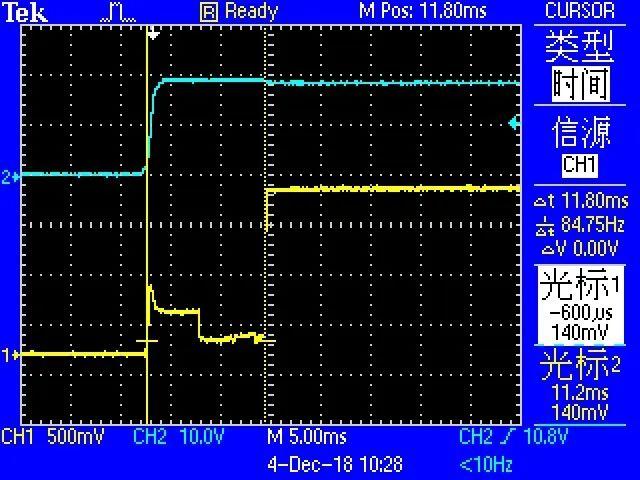 至此基于JHM1101的4~20mA输出变送电路设计完成。还需要说明的是供电电压与负载关系,如图6所示,以及电路上电的稳定时间,如图7所示。