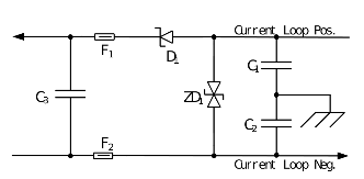一个肖特基二极管D1和一个双向TVS二极管提供ESD、EFT和浪涌保护。BAS170WS保证在电源连接极性相反时,不会有电流经过电流环路。这个肖特基二极管针对电压在70V以内的极性保护。这个模块电流环路设计的最高电压是30V,所以ZD1选用一个击穿电压稍高于30V的双向TVS管。选择ZD1时还需注意,它的漏电电流不应超过5uA,否则会对电流的输出结果产生影响。