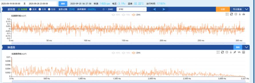 在安装阶段,团队通过无线化部署有效解决了布线困难的问题,所有传感器均接入公司自主研发的监测平台,实现了实时的数据上传与集中管理。在数据采集环节,VB24H传感器对齿轮箱运行过程中产生的振动、温度和声纹信号进行高速采集。通过监测平台的分析模块,系统对低频与高频振动特征进行提取,并结合声纹与温度数据,形成多维度的诊断结果,为设备健康状况提供了科学依据。