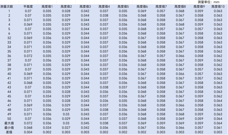 图 | 折叠屏铰链平面度和高度差测量数据表