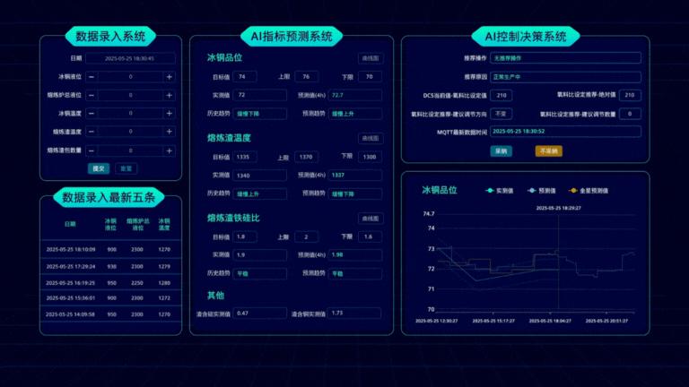 工业领域对 AI 的容错率要求极为严苛,尤其在熔炉温度高达 1,200 多度的冶炼环境,更要确保每一步操作的精确性、安全性。项目组开发出集 AI 控制器、垂类模型和专家数据库于一体的智能体,首次实现了冶炼现场工艺参数动态寻优的深度原因推理。