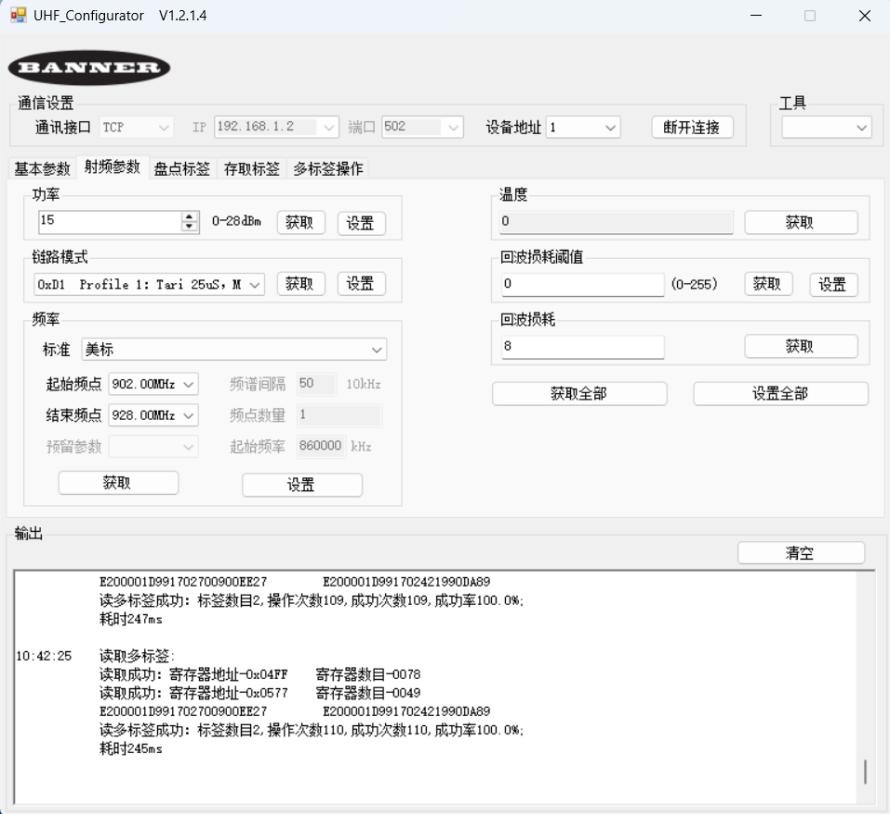 使用UHF软件测试读取效果,在射频参数界面调整功率,防止串读到其他标签。