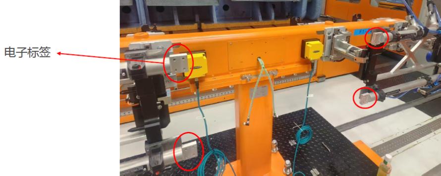现场模具冲压时,不同车型需要更换不同的端拾器。由于是人工更换,所以为了防止出现错误,需要在每个端拾器上加装电子标签,使用读写头进行读取数据。