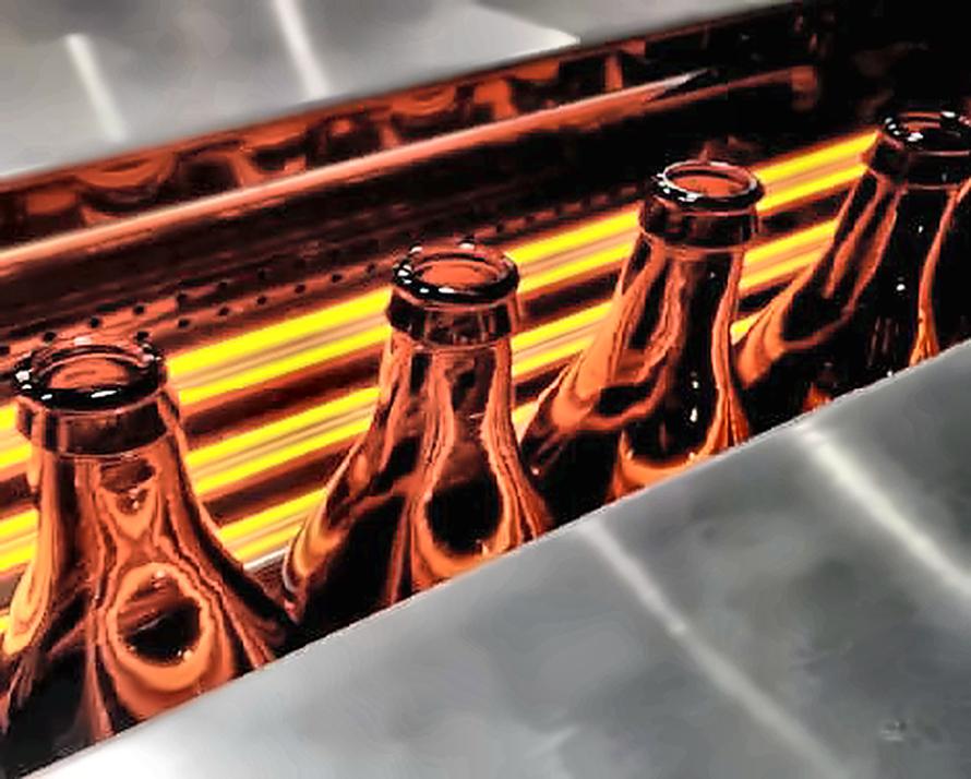 BrewDog 之前已经测试过利用红外线防止冷凝,因此决定与埃赛力达的红外线专家在最新生产线上进行进一步试验,测试非常成功。他们因此在贴标工序之前的生产线上加装了一套功率为 90 kW 的碳中波红外加热系统,该系统由两个 45 kW 模块组成,并采用 PID 控制。瓶身表面的温度会被实时监测,而红外线功率则会自动调节至安装功率的 50–70%,以保持设定的恒定温度。