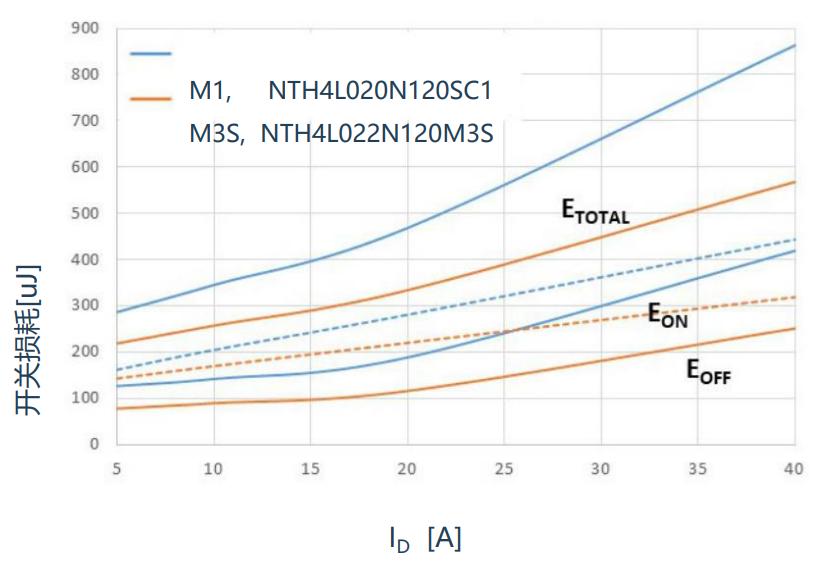 安森美M3S是第二代1200V EliteSiC MOSFET。其重点在于提升开关性能的同时降低比导通电阻(RSP)。M3S在导通损耗与开关损耗之间实现了出色的平衡,使其非常适合PFC等硬开关应用。此外,M3S的低RDS(ON)使其在软开关应用(例如LLC、CLLC、移相全桥)中也具有很强的竞争力,在这些拓扑结构中,开关损耗通过电路设计被显著降低,从而使导通损耗成为主要的损耗来源。M1与M3S两代碳化硅MOSFET的深入对比分析可在安森美应用笔记 AND90204 中找到。