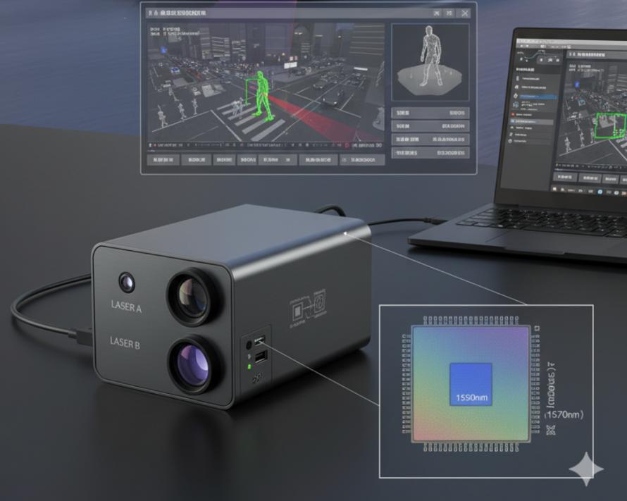 基于单光子雪崩二极管(SPAD)技术,该系统能够探测极弱光信号,实现远距离、弱光环境下的可靠探测。与传统激光雷达相比,灵敏度提升两个数量级。