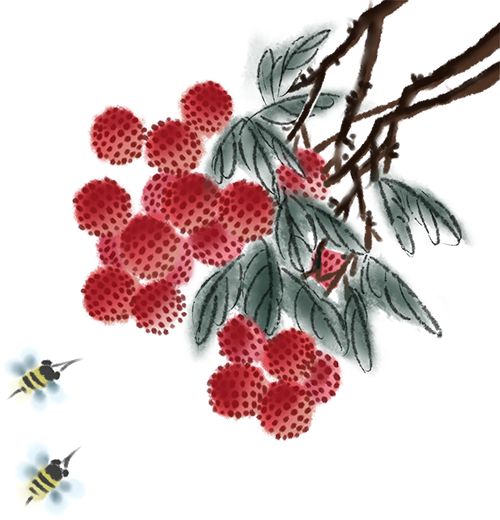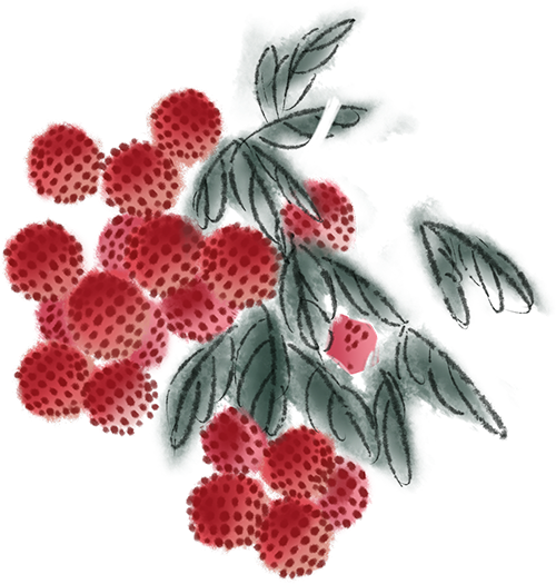 将荔枝健壮的侧枝剪下,植入瓮中,瓮里铺上细沙泥土。让荔枝在途中继续吸取来自枝条的养分,延缓荔枝变质。