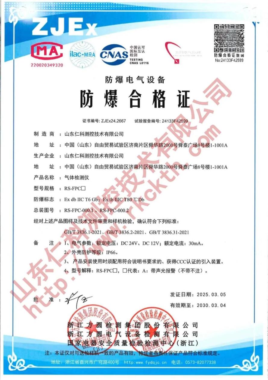 防爆气体变送器配有专业【防爆合格证】,防爆标志为Ex db IIC T6 Gb;Ex tb IIIC T80℃ Db,具有“高”保护级别,可以保障设备在精准监测的同时不会成为周围环境爆炸的诱导因素。