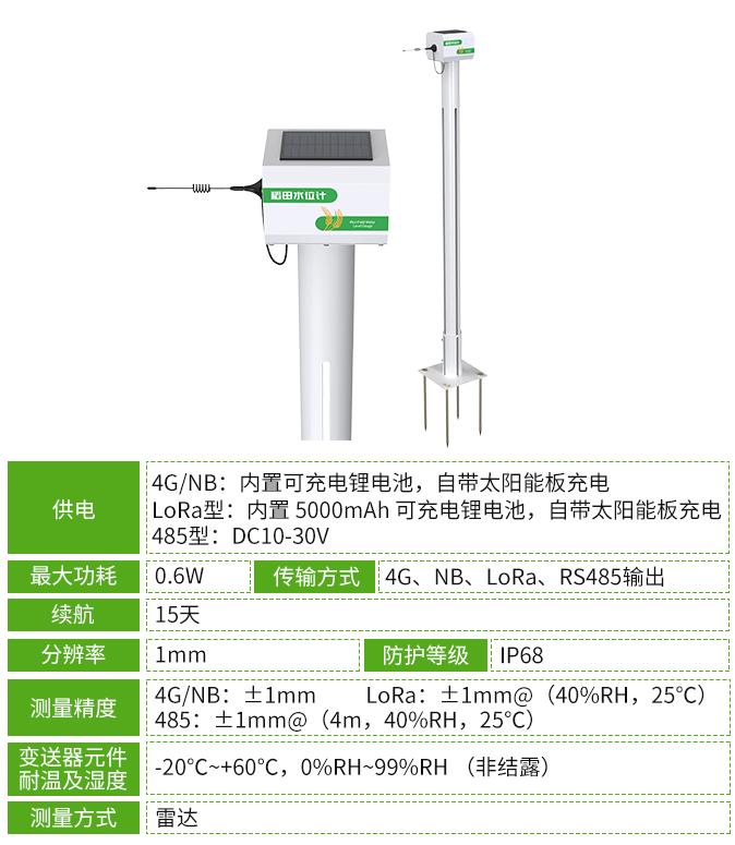 稻田水位计是智慧农业中稻田灌溉管理的专用设备,借助雷达传感器实时捕捉水位变化,解决传统人工监测耗时、数据滞后的问题,能快速将数据传至管理人员,助力及时调整灌溉策略,避免水资源浪费或稻田缺水,为稻田营造适宜水分环境。