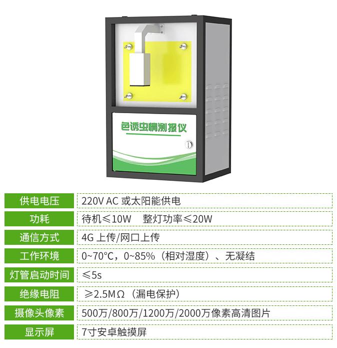 色诱虫情测报仪采用可定期更换的黄、蓝、绿三色粘虫板,专门诱捕具有趋色性的飞行或爬行类害虫。设备基于温控、时控及平台联网控制技术,结合机械组件与高清摄像头,可在无人值守状态下自动完成害虫诱捕灭杀和定时图像采集等系统作业,并上传至农业云平台。农业云平台可对虫害图像进行AI自动识别、统计分析和报表生成,实现对虫害发生发展态势的精准预测。色诱虫情测报仪具有虫害标本采集和虫情分析预测的双重功能,可为现代农业提供智能化虫害监测解决方案。