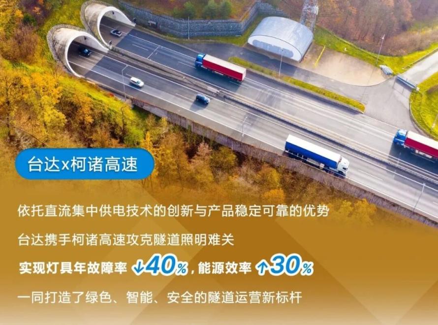 柯诸高速的实践,不仅是台达直流智能照明技术的一次成功落地,更为行业破解隧道照明难题提供了清晰范本。未来,台达会持续以高效的能耗控制、稳定的照明输出、便捷的远程管理,守护隧道里的每一次昼夜通行。