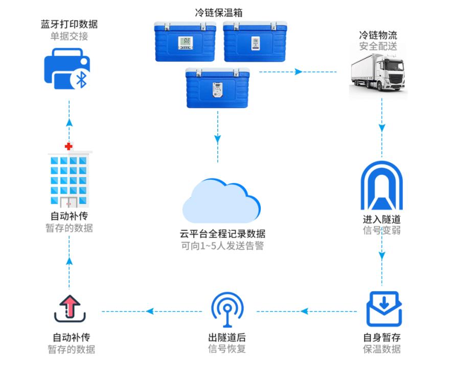 小提示:当通讯信号不稳定时,温湿度监测设备会自动缓存数据;待通信恢复后,设备会立即将缓存数据同步至监控平台,从而完整记录运输全程的温湿度变化。这一功能确保了数据的连续性和完整性,使冷链运输更加安全、高效且可控。