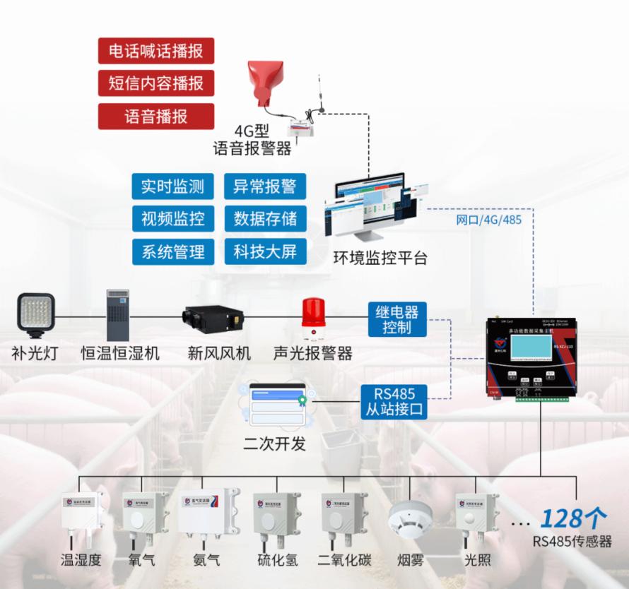 用户还可以通过配置4G型语音报警器,实现语音播报、电话喊话播报和短信内容播报,以便及时调控,为禽畜营造更好的生长环境。